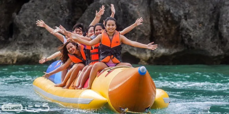 - ۱۵ دقیقه تجربه هیجانانگیز بنانا سواری بر روی آبهای خلیج فارس با سرعت بالا و کنترلشده.