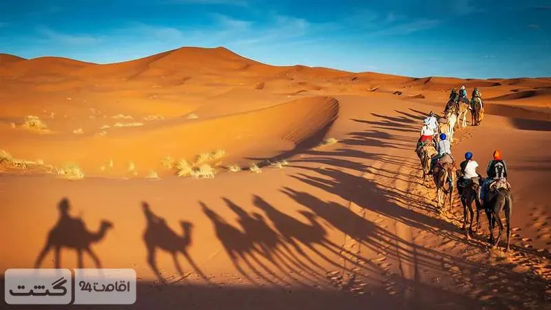 در ادامه، میتوانید از نمایشهای هنری و سنتی لذت ببرید. این برنامهها شامل رقصهای محلی عربی هستند که با لباسهای سنتی اجرا میشوند و هنر و فرهنگ اصیل عربی را به نمایش میگذارند. اجرای موسیقی زنده با سازهای بومی در کنار حرکات نرم و زیبای رقصهای عربی، فضایی دلنشین و صمیمی ایجاد میکند که حس و حال زندگی در کمپهای بادیهنشینی را به بهترین شکل منتقل میکند.
