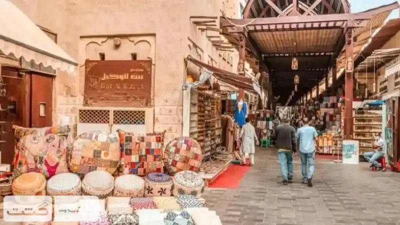 در بیش از 600 بازار که در دو طبقه در این مجموعه قرار دارند، میتوانید از ساعتهای امروزی و لباس گرفته تا صنایع دستی بومی و سوغاتی خریداری کنید. مغازههای این بازار در طبقه بالایی خوراکیهای بومی، صنایع دستی و فرشهای دستباف و گلیم را در خود دارند. یک راستا از مغازهها سنگهای قیمتی، طلا و جواهرات عربی میفروشند و همچنین برخی از مغازهها نیز الماس میفروشند. برخی از هنرمندان در این بازار با استفاده از نقاشی طرحهای جدیدی میسازند.