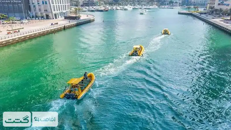 تفریحات دریایی در دبی یکی از تفریحاتی است که مردم را از تمامی دنیا برای تجربه این حس ناب و بی نظیر به این شهر جذب می کند. روش های بسیاری برای لذت بردن از این تورهای آبی وجود دارد که یکی از آنها خرید بلیط قایق زرد دبی است. اقامت۲۴ قیمت بلیط قایق زرد دبی را با بهترین نرخ برای شما فراهم می کند. تنها کافی است بلیط را از این مرکز رزرواسیون تهیه کنید و از سفر آبی خود لذت ببرید. تور قایق زرد تفریحی دبی در زمان های متعددی تجربه گشت و گذار دریایی را برای مسافران فراهم می کند. در نتیجه، متناسب با زمان تعیین شده مکان هایی را به شما در حین قایق سواری نشان می دهد. این تجربه بی نظیر به کمک قایق های بادی زرد رنگی اتفاق می افتد که بسیار ایمن هستند و با سرعت خوبی محیط مد نظر را طی می کنند. تور قایق زرد دبی از دبی مارینا شروع می شود و پس از دیدن مناظر بی نظیر دبی همچون هتل آتلانتیس و جزیره پالم که ساخت دست بشر است شما را متحیر کرده و به مقصد می رساند. برای دسترسی به دبی مارینا، می توانید با مترو خط قرمز رنگ به ایستگاه Sobha Reality Metro Station بروید. پس از 17 دقیقه پیاده روی به دبی مارینا خواهید رسید.
