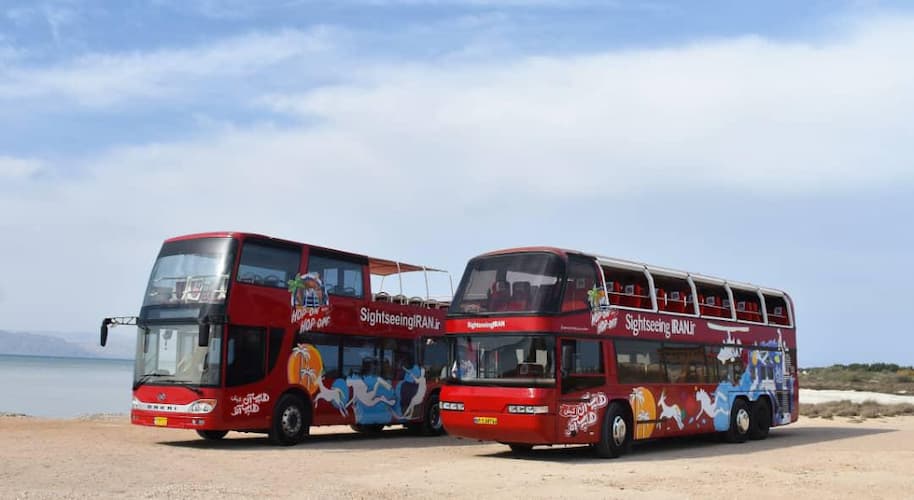 اتوبوس گردشگری کیش؛ گشت با اتوبوس های روباز هاپ آن هاپ آف